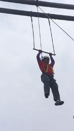 这次拓展训练给我感触最深的项目是“高空单杆”,这是个挑战自我的训练项目,一开始看到单杆悬挂在10多米的高空时,我的心就直打抖,特别是看到第一个上去的小梁爬到杆顶时的那个胆战心惊的样子,我也和大家一样希望她能战胜自己,大声地给她鼓劲、加油,当时我就心想,我可能也是这样子胆小的,当我终于鼓起勇气爬上杆顶时,我真的就和小梁一样,再也不敢站直身子,虽然团队的队员都给我加油,教练甚至用激将法激我都不管用,我的心还是直砰砰跳,直到脑子一片空白……直至从高空跳下落到地面时,心里一直都很不是滋味,并深刻反省自己怎么就没有这个胆量呢?虽然明知道所有的设备是安全的,但我就是缺乏信心和勇气,这是造成挑战失败的根本原因。其实,我们平时的工作、生活、学习也是如此,无任做什么,首先要有必胜的信心和战胜困难的勇气,同事之间要相互信任,工作才能做好做扎实,公司才能发展、再创辉煌。生活中,家庭成员之间也要彼此信任,家,才能和谐、兴旺。(邱小红)