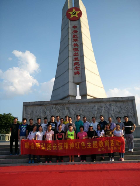 2016年10月27日,为落实上级党委“两学一做”学习教育工作要求,丰富学习教育形式,深入学习和贯彻落实习总书记在纪念红军长征胜利80周年的重要讲话精神,赣金所组织全体员工前往瑞金、于都,开展了一次党支部专题学习和全体员工培训相结合的“传承爱国主义、弘扬长征精神”的红色主题教育活动。
