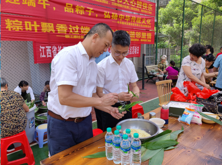 6月19日,赣州发展投资公司联合章江街道赣江源社区开展以“粽叶飘香迎端午 幸福和谐邻里情”为主题的端午节活动,投资公司员工与社区居民聚在一起拉家常、包粽子、送关爱,其乐融融迎佳节。
