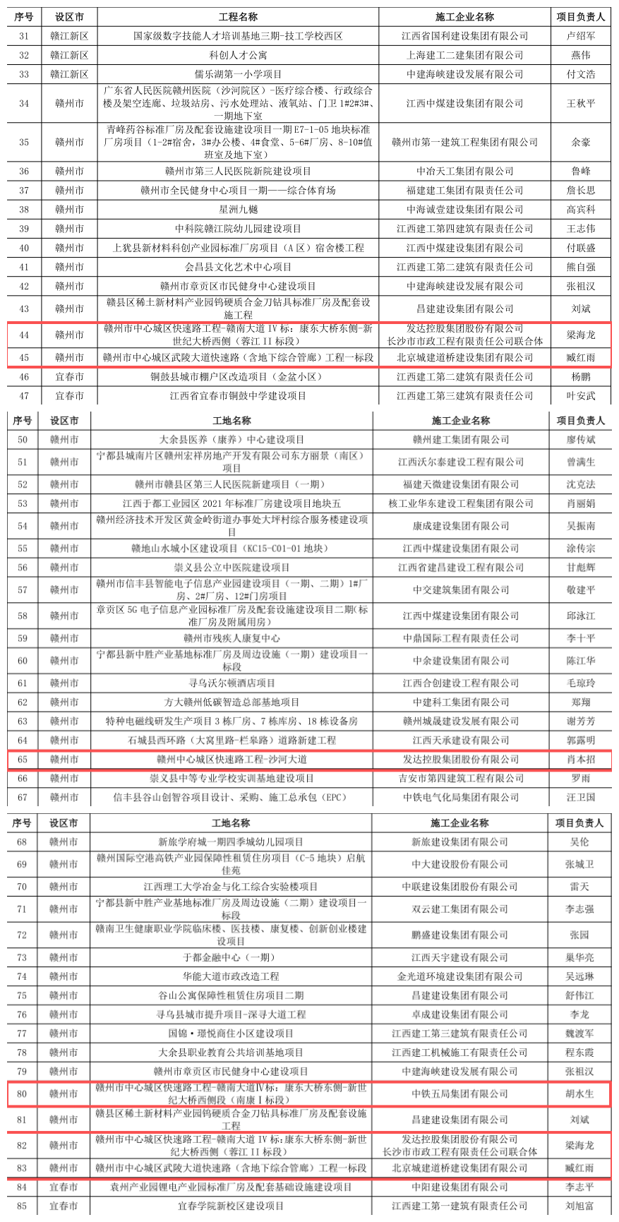 近日,江西省住房和城乡建设厅正式公布2024年度省级标准化项目评选结果,集团投资建设的沙河大道、赣南大道Ⅳ标(南康Ⅰ标段、蓉江Ⅱ标段)、武陵大道一标段等多条快速路项目,成功获评“江西省建筑施工安全生产标准化工地”与“江西省建筑工程质量管理标准化工程”省级荣誉。