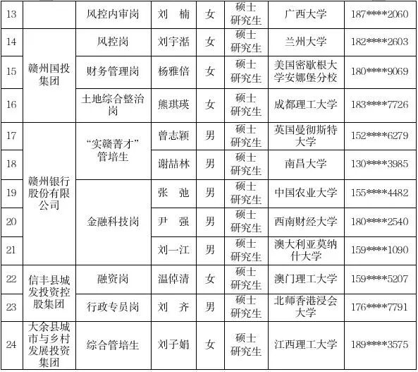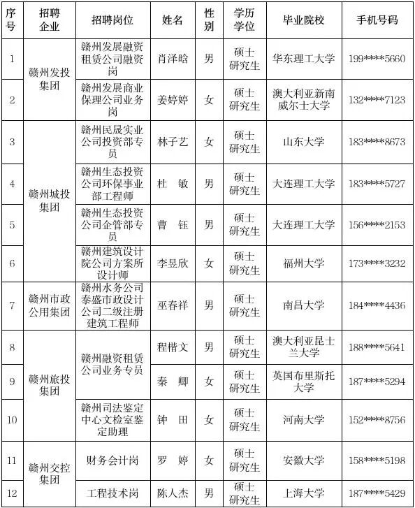 【国资赣将】赣州市国有企业2025年组团引才拟录用人员名单公示